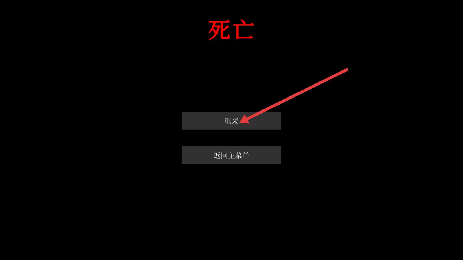 4、若触发“死亡”结局,点击【重来】重新开始游戏,根据规则调整行动策略,再次尝试顺利推进剧情。