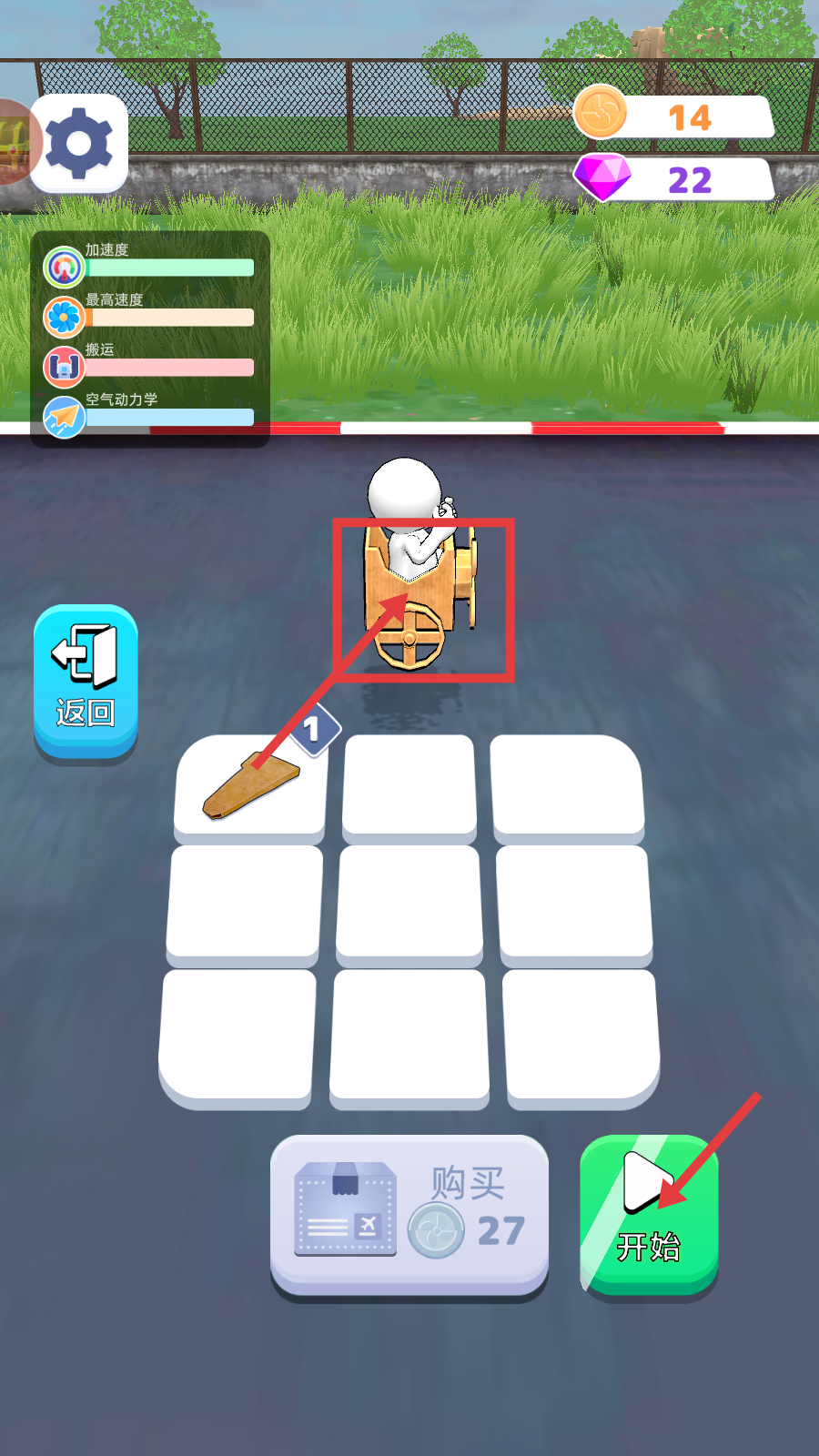 2、将部件放置到车辆对应位置,组装好后点击右下角绿色【开始】按钮,启动车辆挑战。