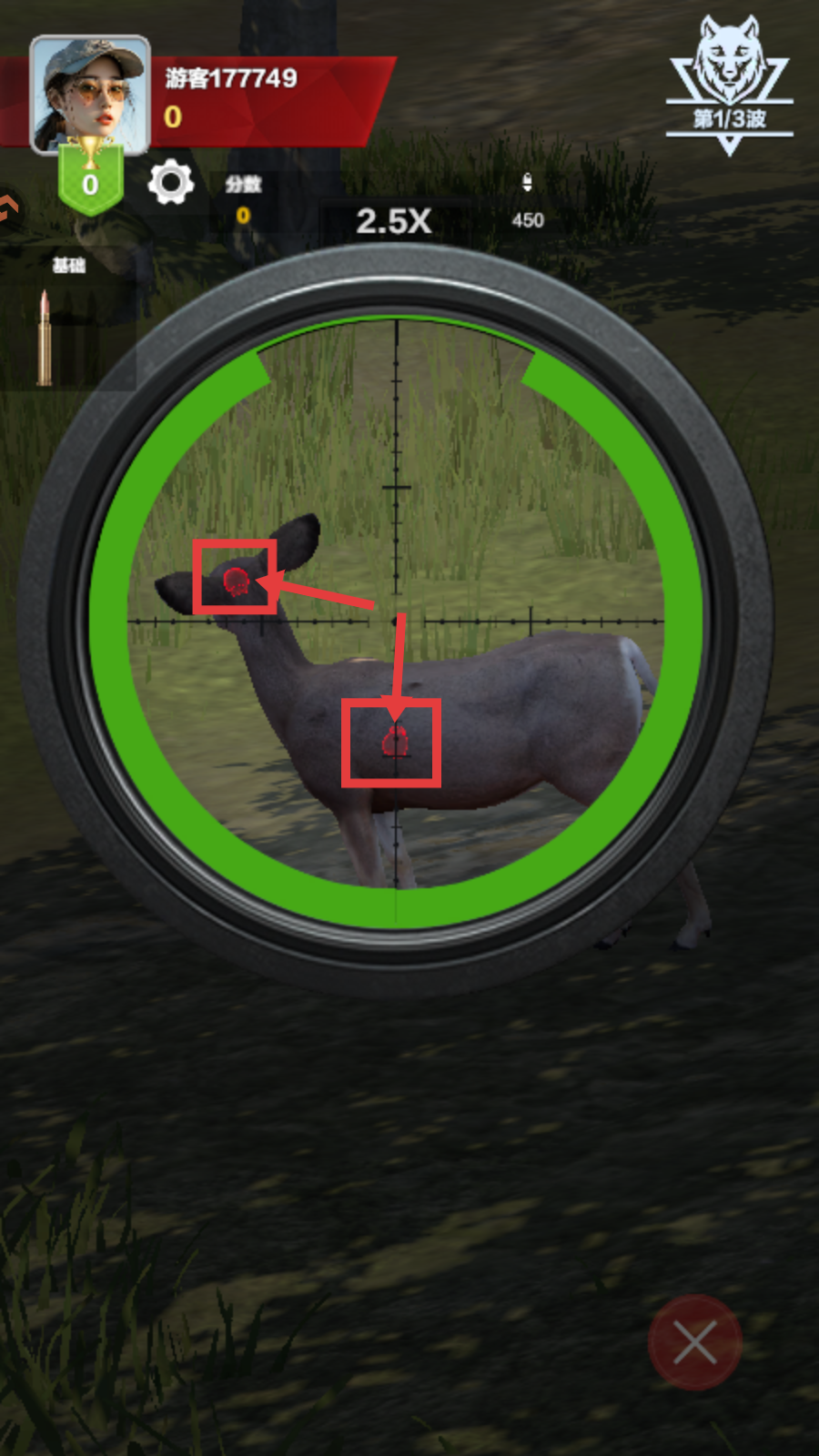 3、用瞄准镜锁定鹿,优先瞄准显示骷髅或心脏的关键部位,提升狩猎成功率与得分效率。