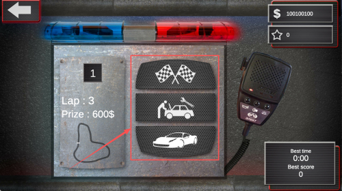 2、如何查看比赛信息?在赛事界面中,可看到当前圈速“Lap:3”、奖金“Prize:600$”及最佳成绩“Best score 0”。
