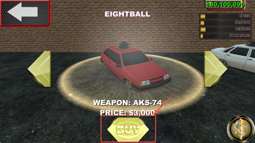 3、如何购买武器?在商店界面查看武器信息,如“WEAPON:AKS-74”标价“PRICE:3000”,点击“BUY”完成购买。