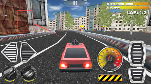 4、如何选择角色与开始比赛?在角色选择界面点击“1:Sergeant Judit”或“2:Playei”选定人物,确认“LAP:1/2”后进入比赛。