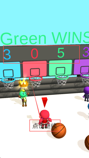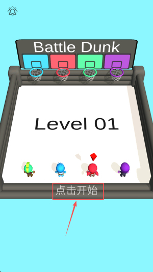 1、开启篮球对决:进入游戏熟悉规则,明确 “限时投球、争夺桂冠” 目标,选择对应颜色小人,加入 4 人对战。