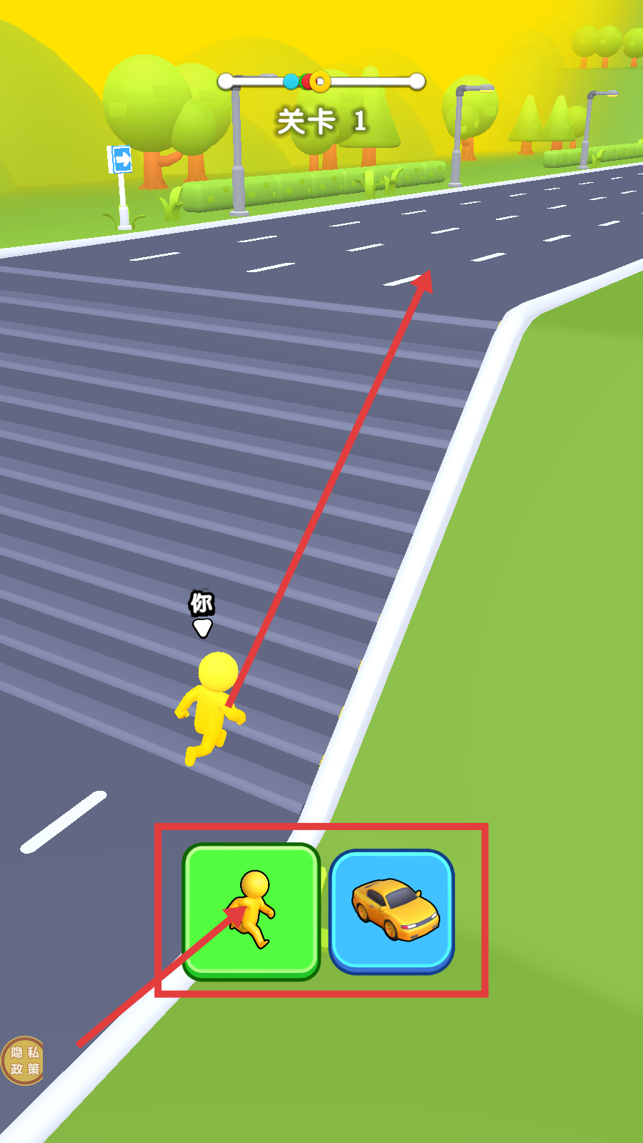 3、若切换为【人物】形态,操控黄色小人在道路上奔跑,灵活调整方向,持续向终点前进。