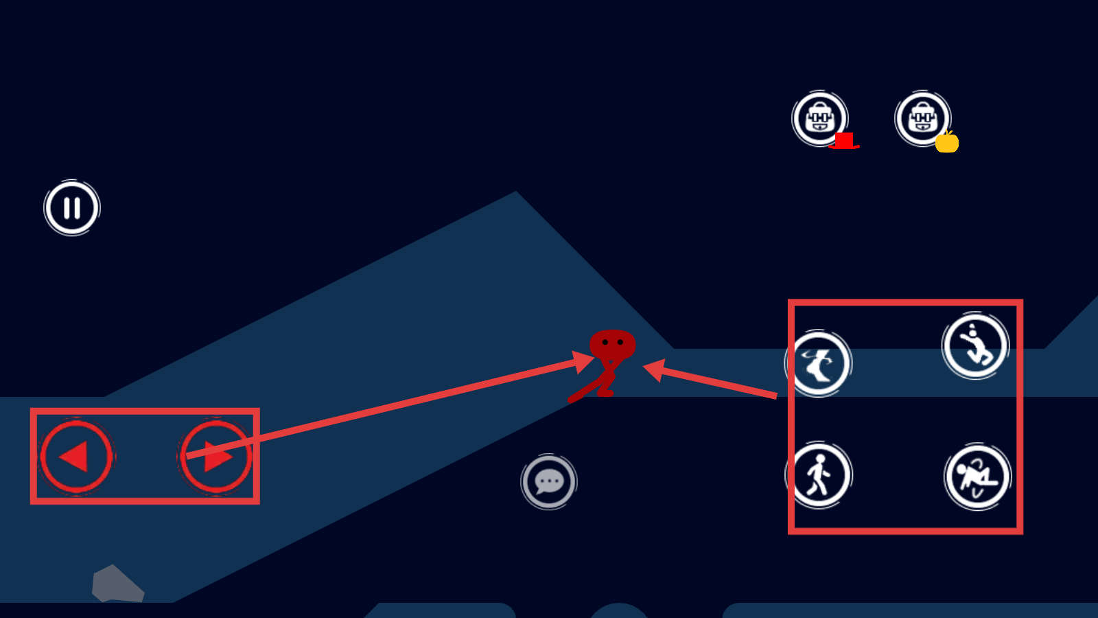 2、旅程中,利用左侧的左右箭头按钮控制角色移动,右侧的动作按钮可让角色执行跳跃、潜水等操作。
