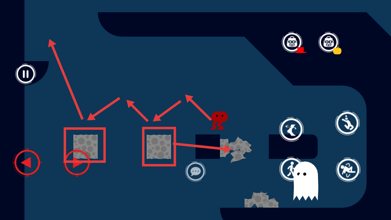 3、在场景中移动时,注意躲避白色幽灵,同时推动灰色方块,开辟前进的路径。