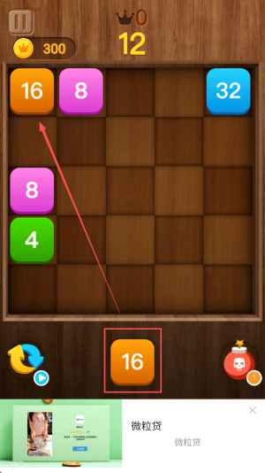 2、接着,滑动屏幕合并相同数字,优先凑出高值方块。