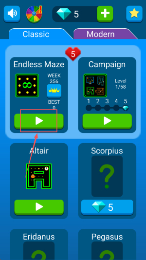 3、然后,在模式菜单选择“Classic”或“Endless Maze”开始挑战。