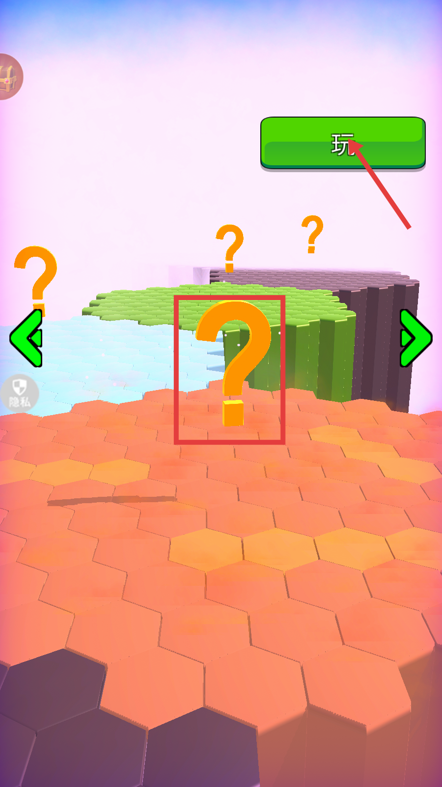 1、点击绿色【玩】按钮,选择带有问号标识的关卡区域,开启车辆组装与行驶的挑战。