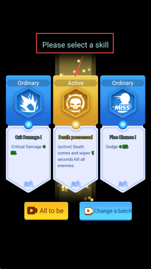 3、如何使用技能?在技能选择界面,点击“Active”按钮选择并激活技能。