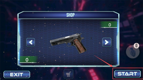 3、如何购买武器?在商店界面查看可用武器,点击想要购买的武器,然后点击“START”按钮确认购买。