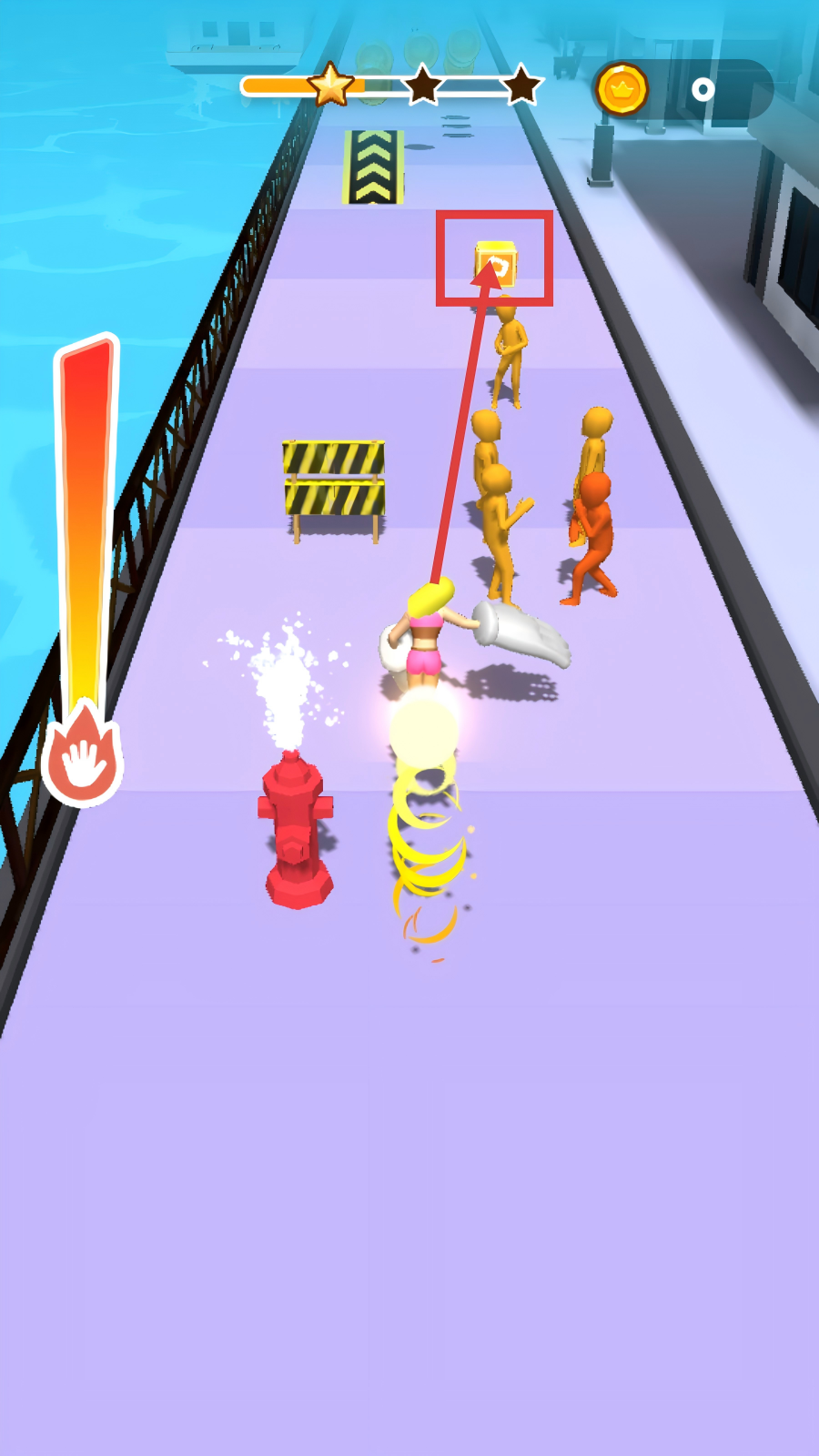 3、在关卡里看到黄色道具箱时,控制角色靠近获取,道具能助力闯关,还可利用场景中的消防栓等元素,增强角色的能力。