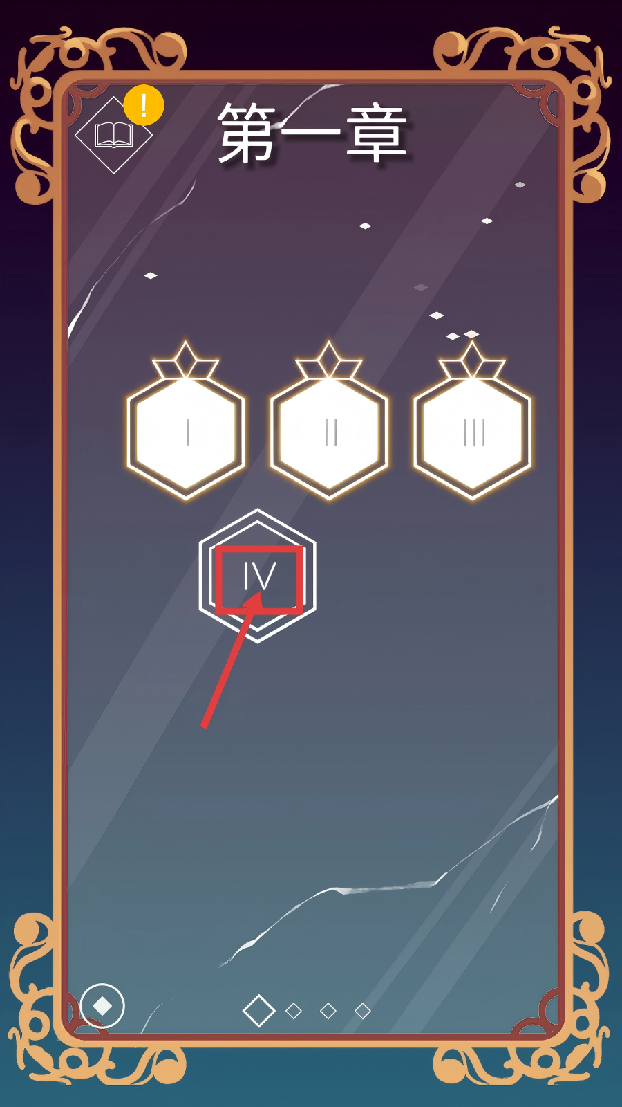 1、进入游戏【第一章】界面,点击标有【IV】的关卡图标,即可开启第四关的冒险探索。