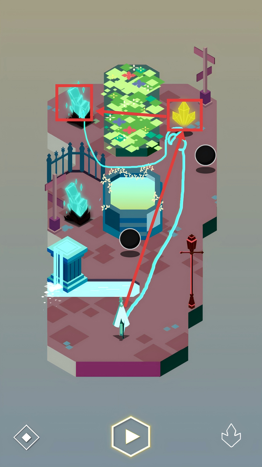 2、在关卡场景内,留意黄色水晶与蓝色水晶的分布,观察它们之间的能量连接关系,以此推进进程。