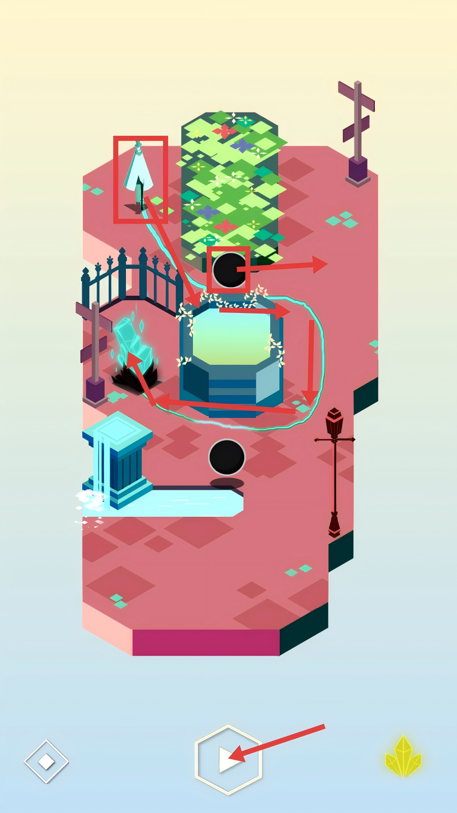 3、操控角色时,借助场景里的黑色传送点和能量路径,同时点击底部箭头按钮,助力角色顺畅探索互动。