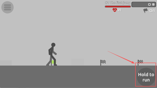 3、如何控制角色移动?在教程中,长按“Hold to run”按钮让角色跑起来。
