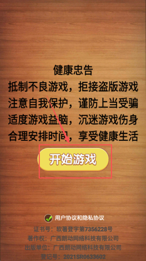 2、接着,阅读健康忠告后点击“开始游戏”。
