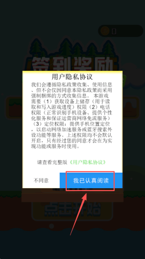1、首先,阅读并同意用户隐私协议,点击“我已认真阅读”按钮。