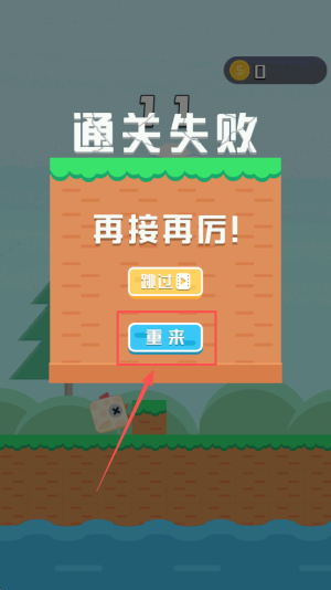 4、最后,若通关失败,点击“重来”按钮重新开始游戏。