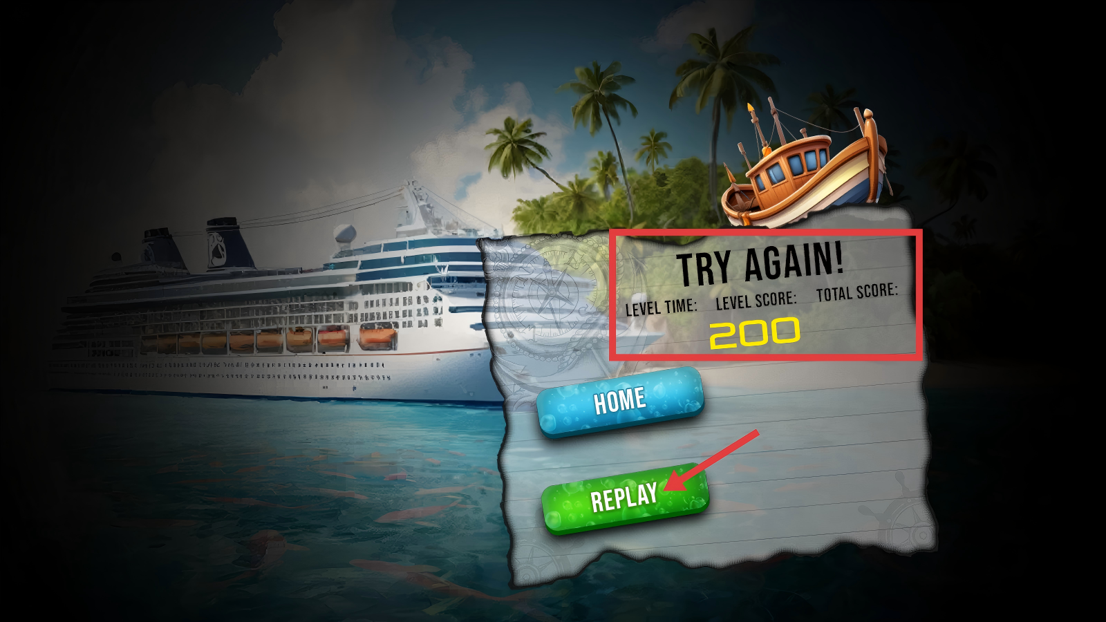 4、挑战失败后,看到【TRYAGAIN!】提示,可点击【REPLAY】按钮重新开始挑战。
