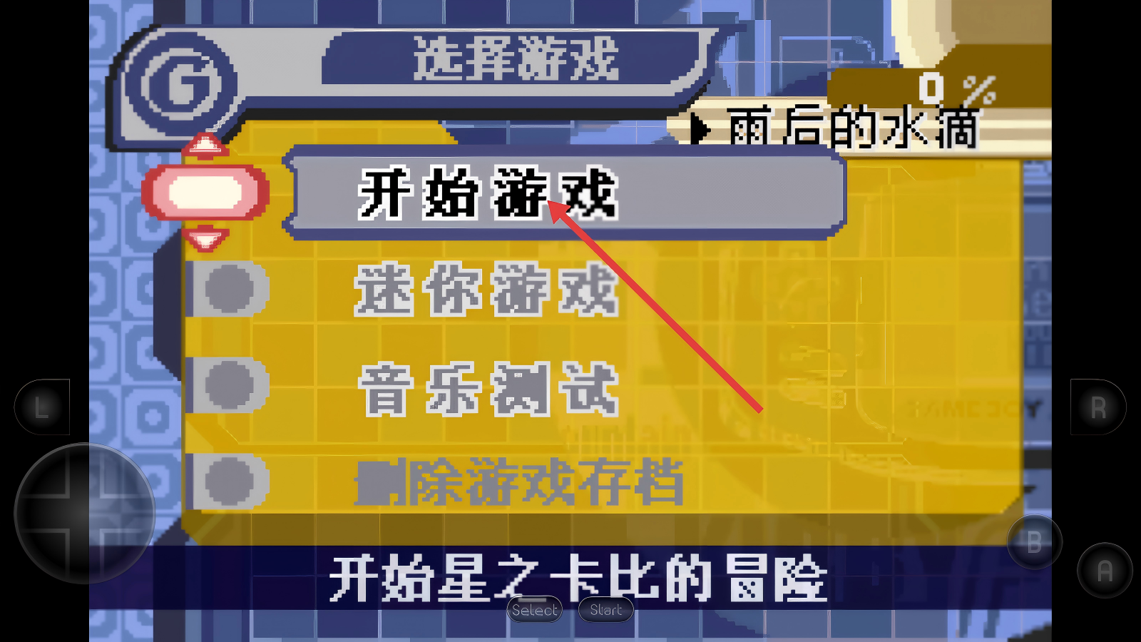 1、在“选择游戏”界面,点击【开始游戏】,开启星之卡比的冒险旅程。