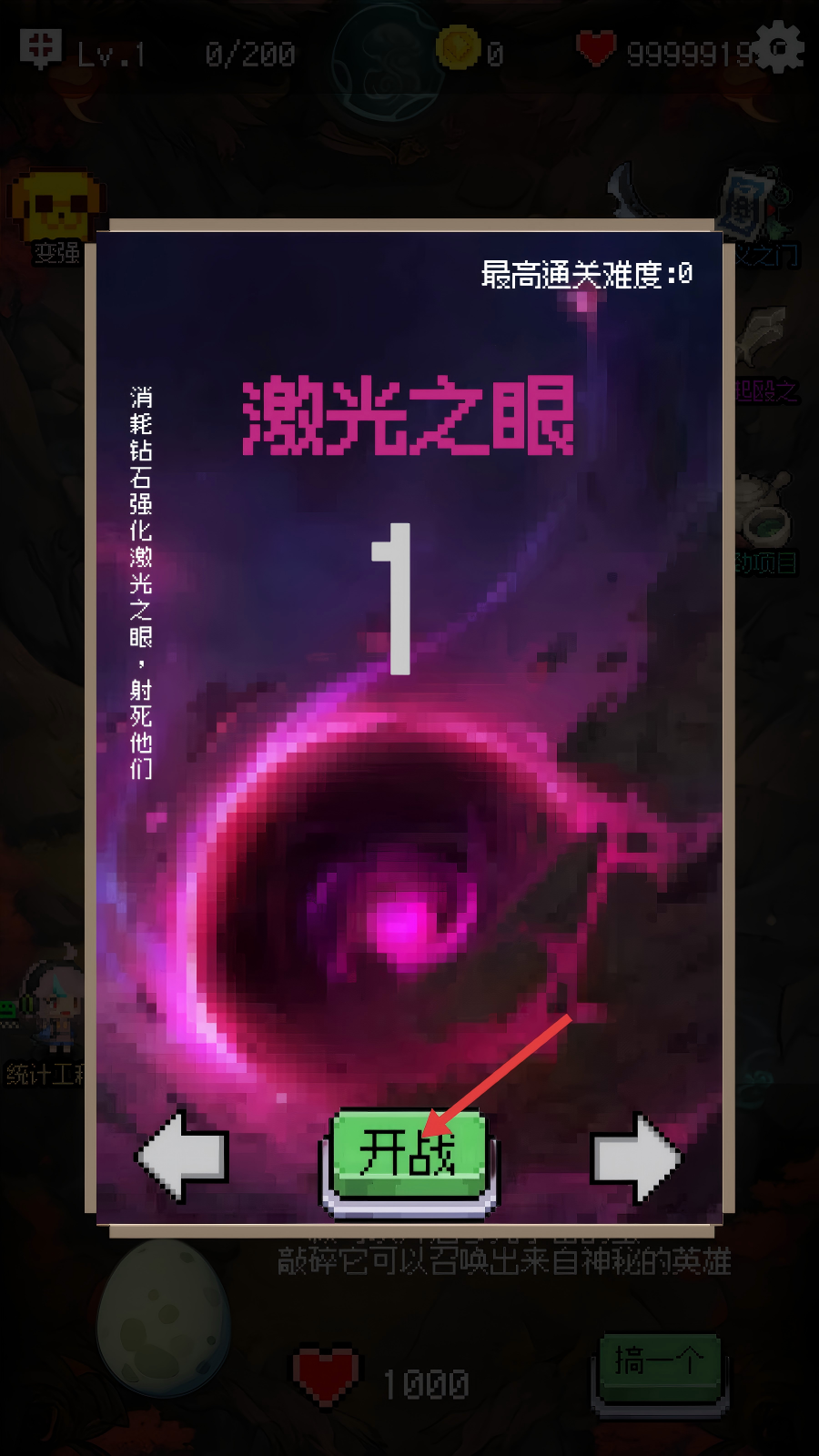 1、点击【开战】,进入“激光之眼”玩法,开启战斗,利用激光攻击敌人。