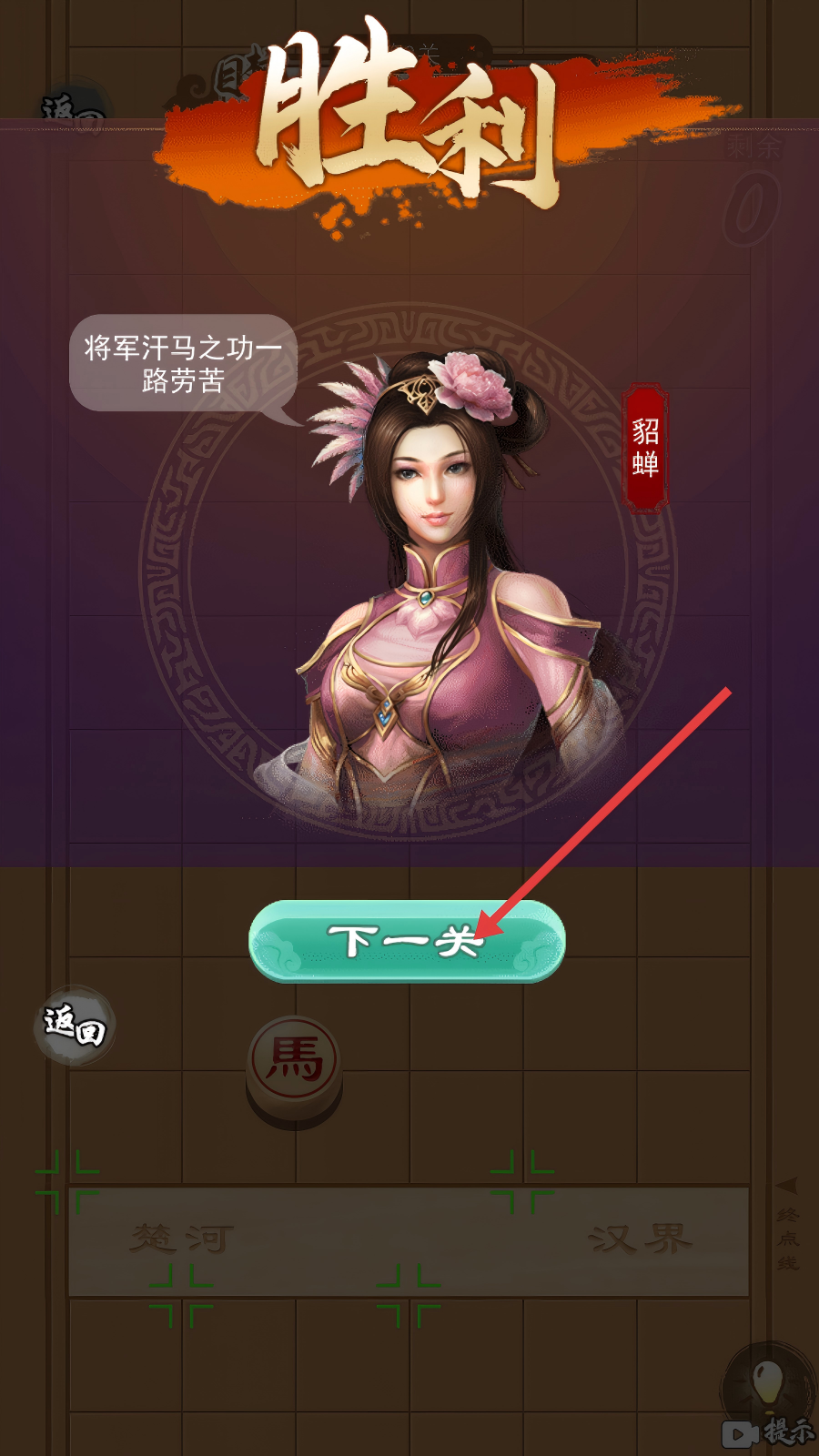 4、达成目标后弹出“胜利”界面,点击【下一关】按钮,就能挑战后续关卡。