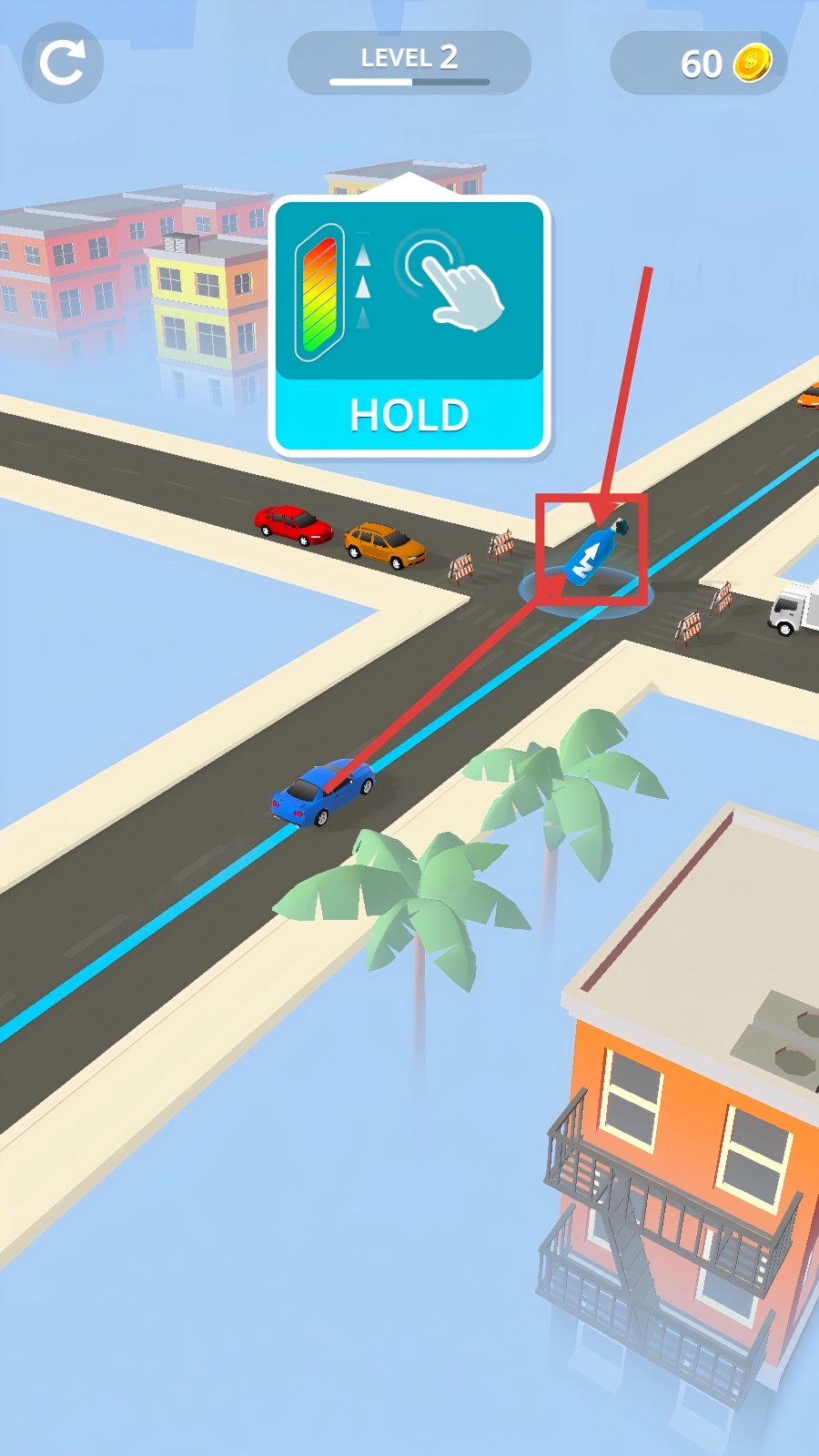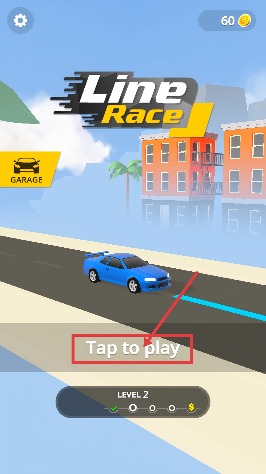 1、进入游戏后,看到【Tap-to-play】提示就点击,此时处于【LEVEL-2】,准备开始赛车。