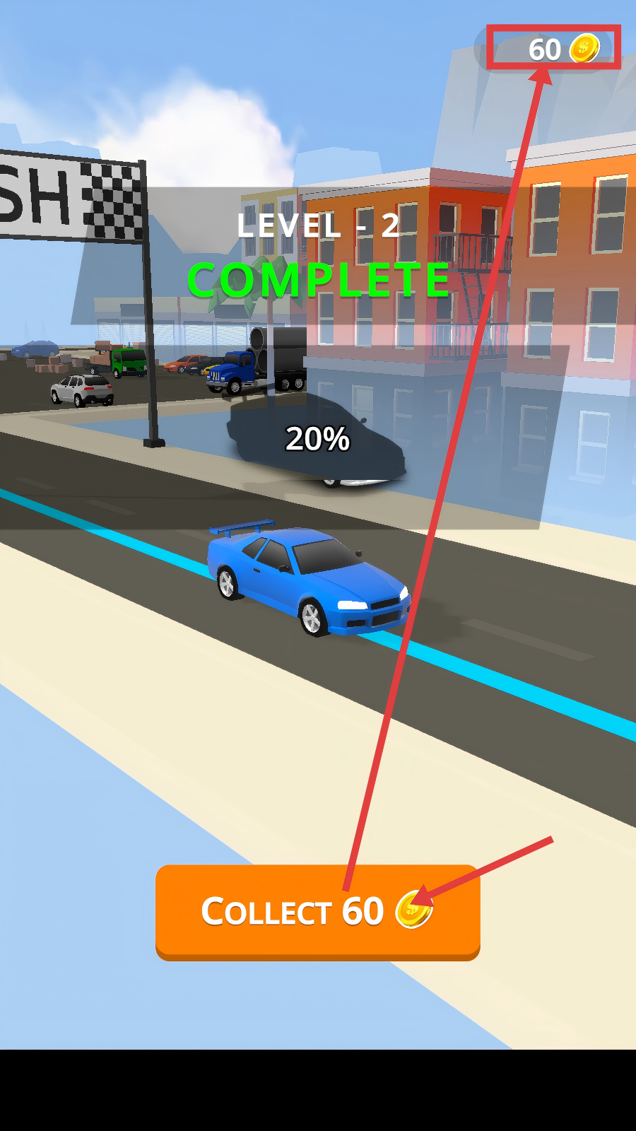 4、成功完成【LEVEL-2】后,点击【Collect-60】金币的按钮,获取奖励,积累金币可用于后续游戏。