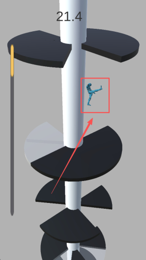 2、掌握移动技巧:通过滑动屏幕控制小人在螺旋塔上移动方向,时刻观察脚下方块稳定性,避免踩空掉落。