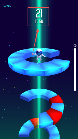2、掌握弹跳技巧:通过点击或滑动屏幕控制太空人弹跳力度与方向,确保精准落在螺旋塔平台,避免掉落。