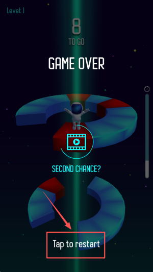 3、然后,若宇航员坠落,点击“Tap to restart”重新开始。