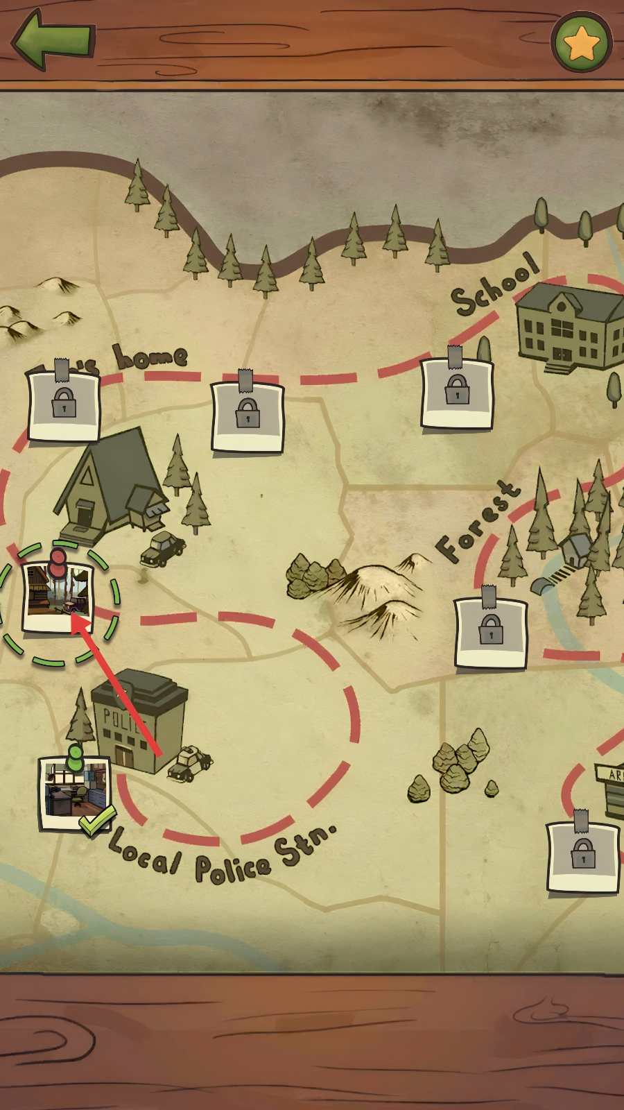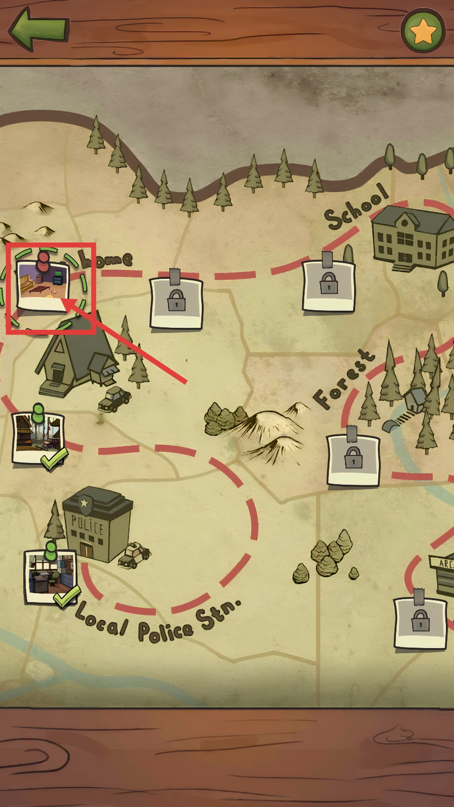 4、完成当前场景的物品收集后,返回地图界面,点击新的带标记场景图标,推进到下一个解谜关卡。