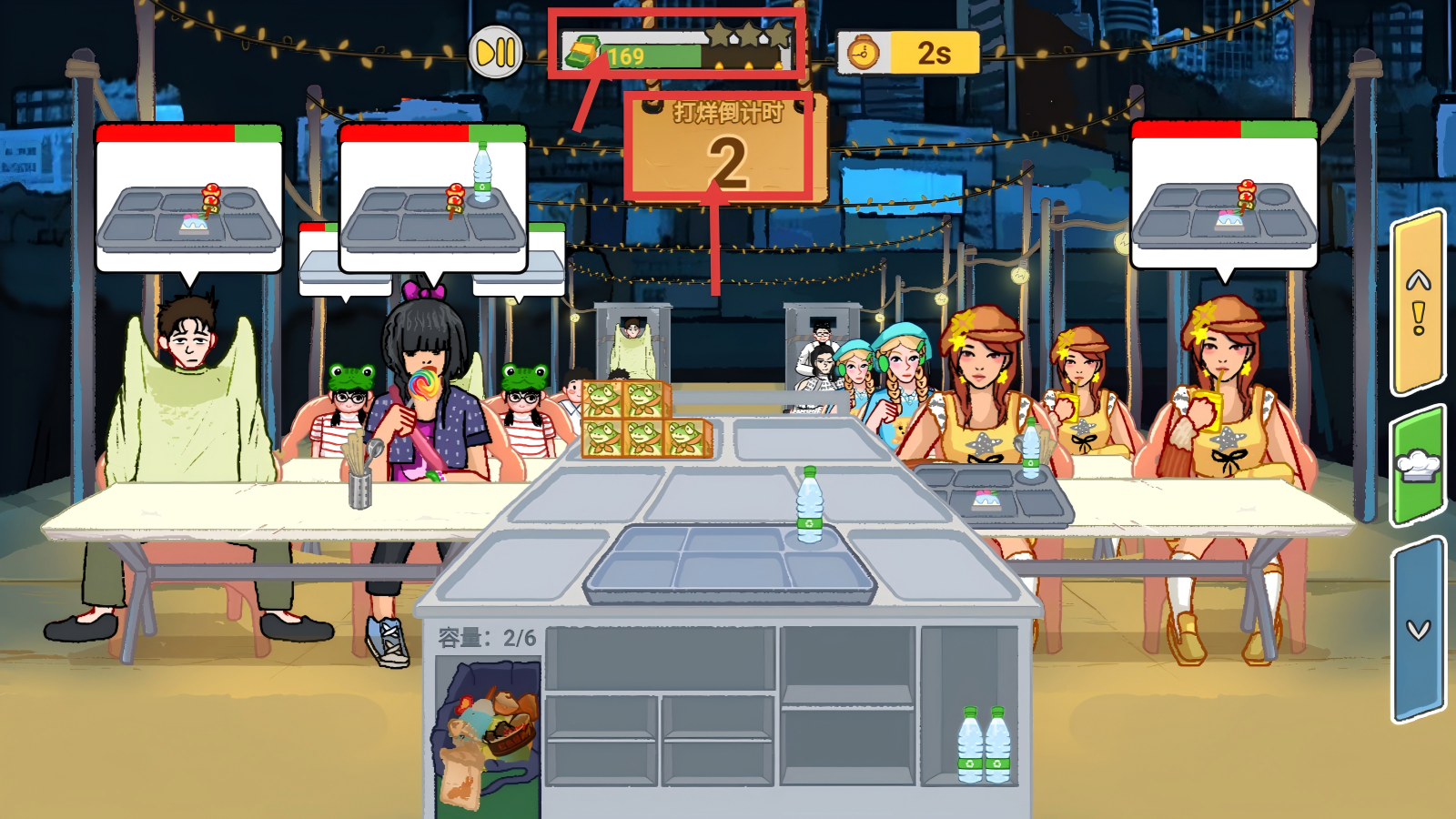 3、留意上方【打烊倒计时】,在时间结束前尽可能多服务顾客,提升金币获取量,同时关注金币数值的增长情况。