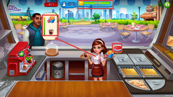 3、若顾客同时需要【薯条-配番茄酱】和【可乐】,同步取用或制作两种餐品,高效完成多订单,提升金币获取效率。