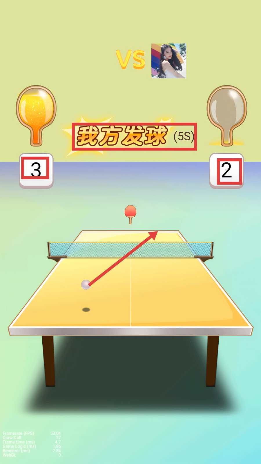 3、轮到【我方发球】时,在5秒内控制发球方向,将球击向对方区域,争取得分拉开比分。