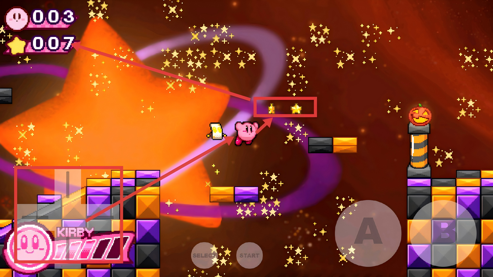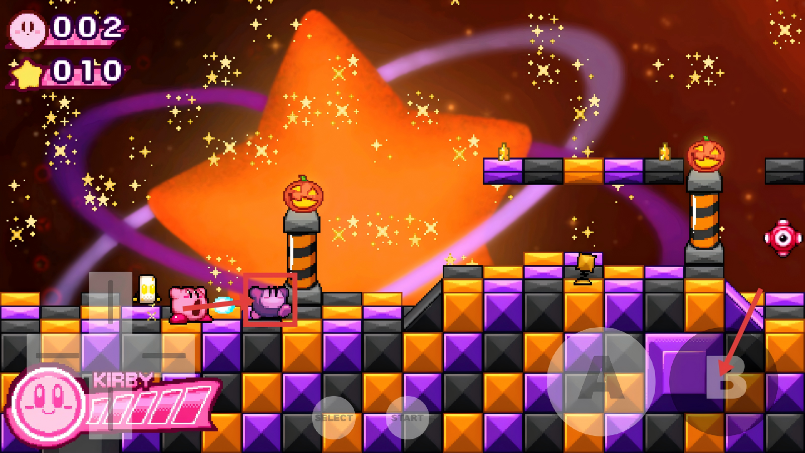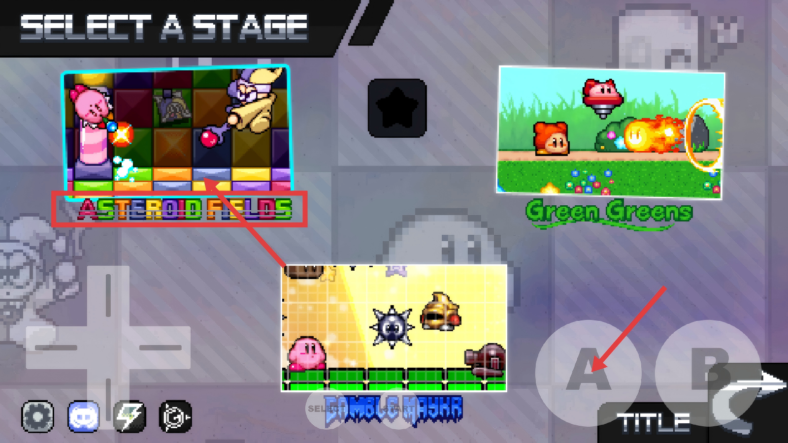 1、在关卡选择界面,选中【AsteroidFields】关卡,点击【A】键,进入太空风格的卡比冒险关卡。