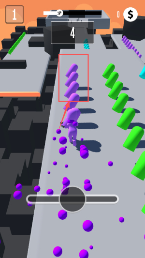 2、使用武器灭敌:在赛道行进中,遇到其他颜色敌方橡皮人时,操控角色使用手中武器发起攻击,将其消灭以扫清障碍。