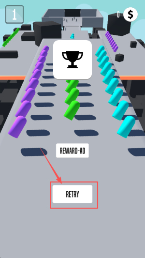 4、最后,游戏结束后点击“RETRY”按钮重试。