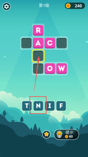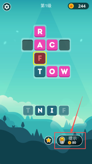 3、使用提示辅助:若无法确定字母,点击字母提示功能获取线索,帮助完成单词填充,继续推进关卡。