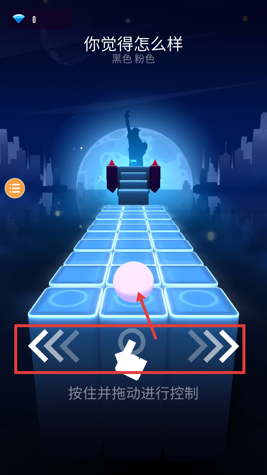 1、进入游戏后,按照提示【按住并拖动】来控制粉色球体移动,熟悉操作方式以便后续通关。