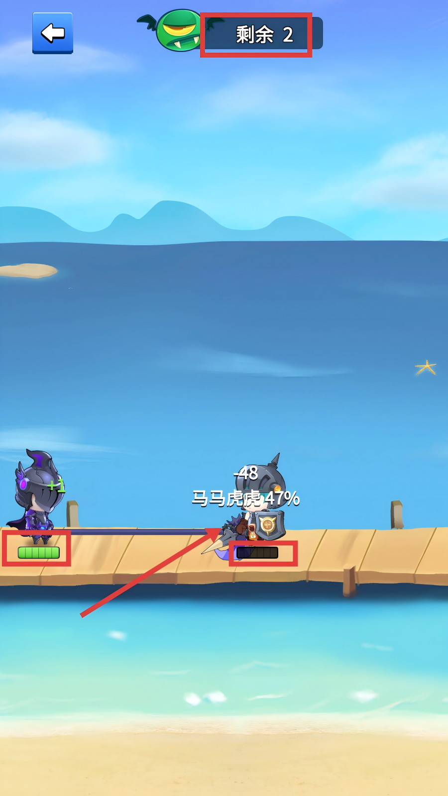 3、战斗时,留意上方【剩余】敌人数量,攻击敌人以削减其血量,同时关注自身生命条,保证战斗续航。