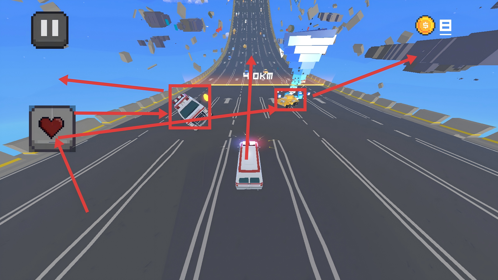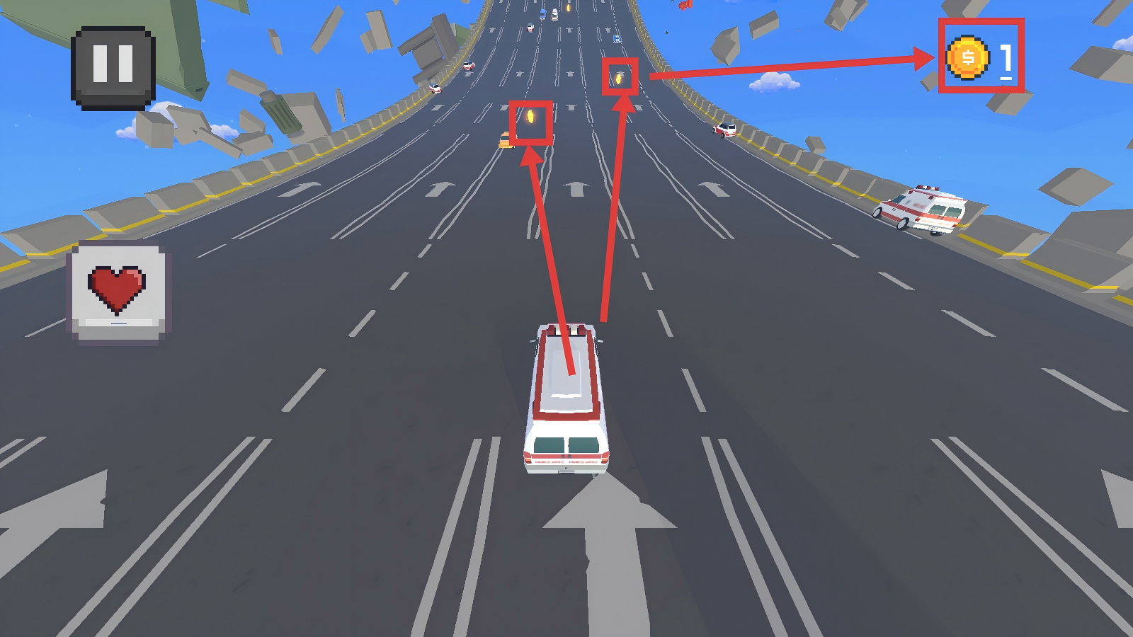 3、行驶时需灵活躲避其他车辆,同时注意左侧爱心生命值,避免碰撞导致失败。