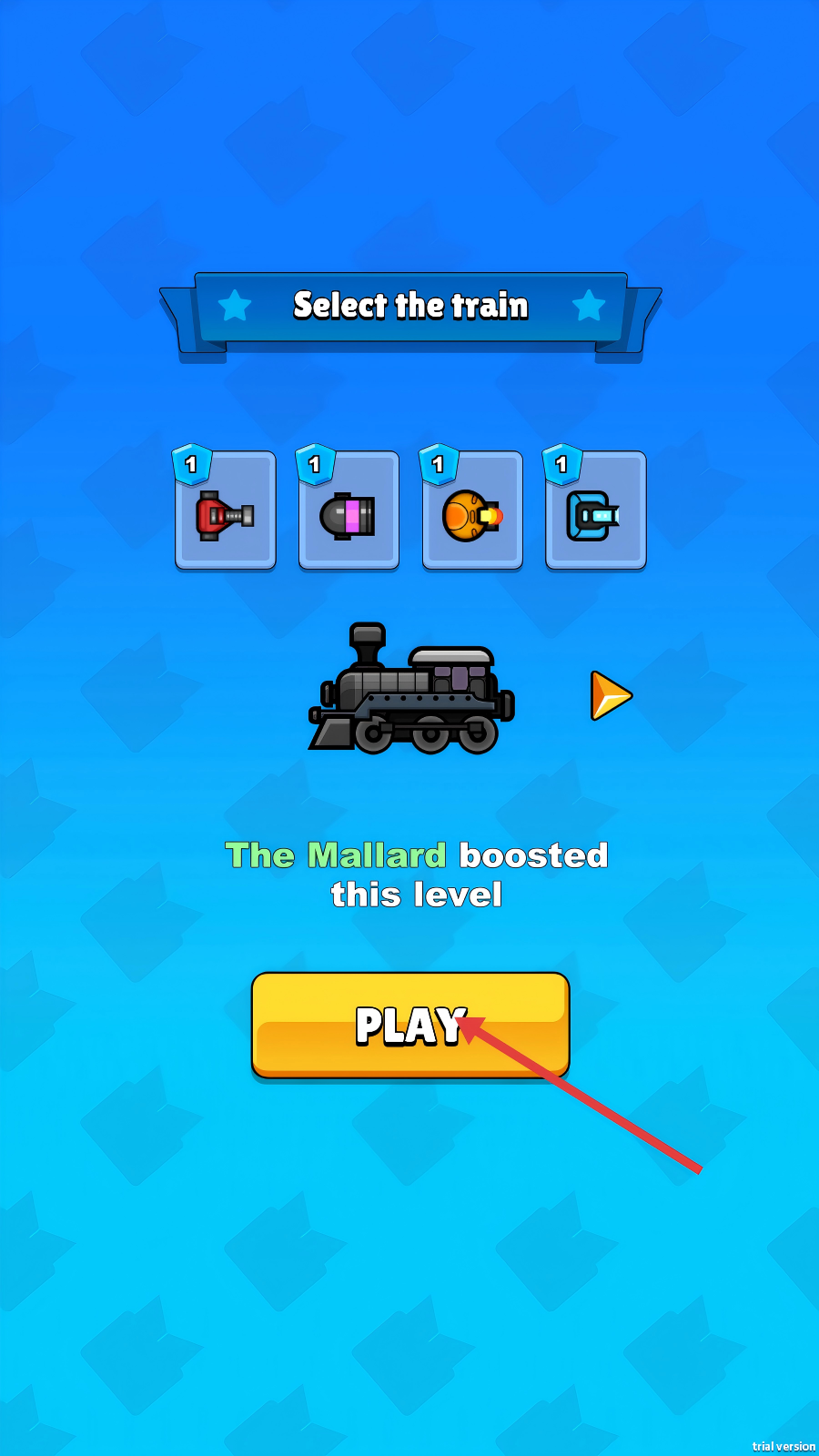 1、进入【Select-the-train】界面,选择心仪的火车后,点击黄色【PLAY】按钮,即可开启游戏。