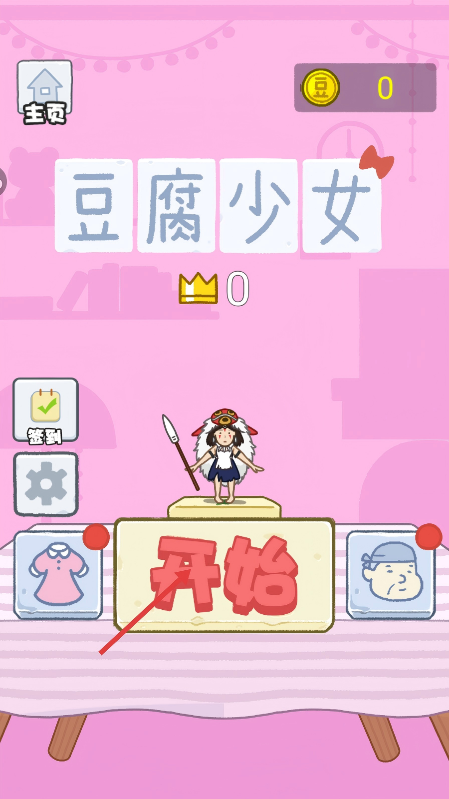1、进入《豆腐少女》游戏主界面,点击【开始】按钮,即可开启豆腐堆叠的挑战之旅。