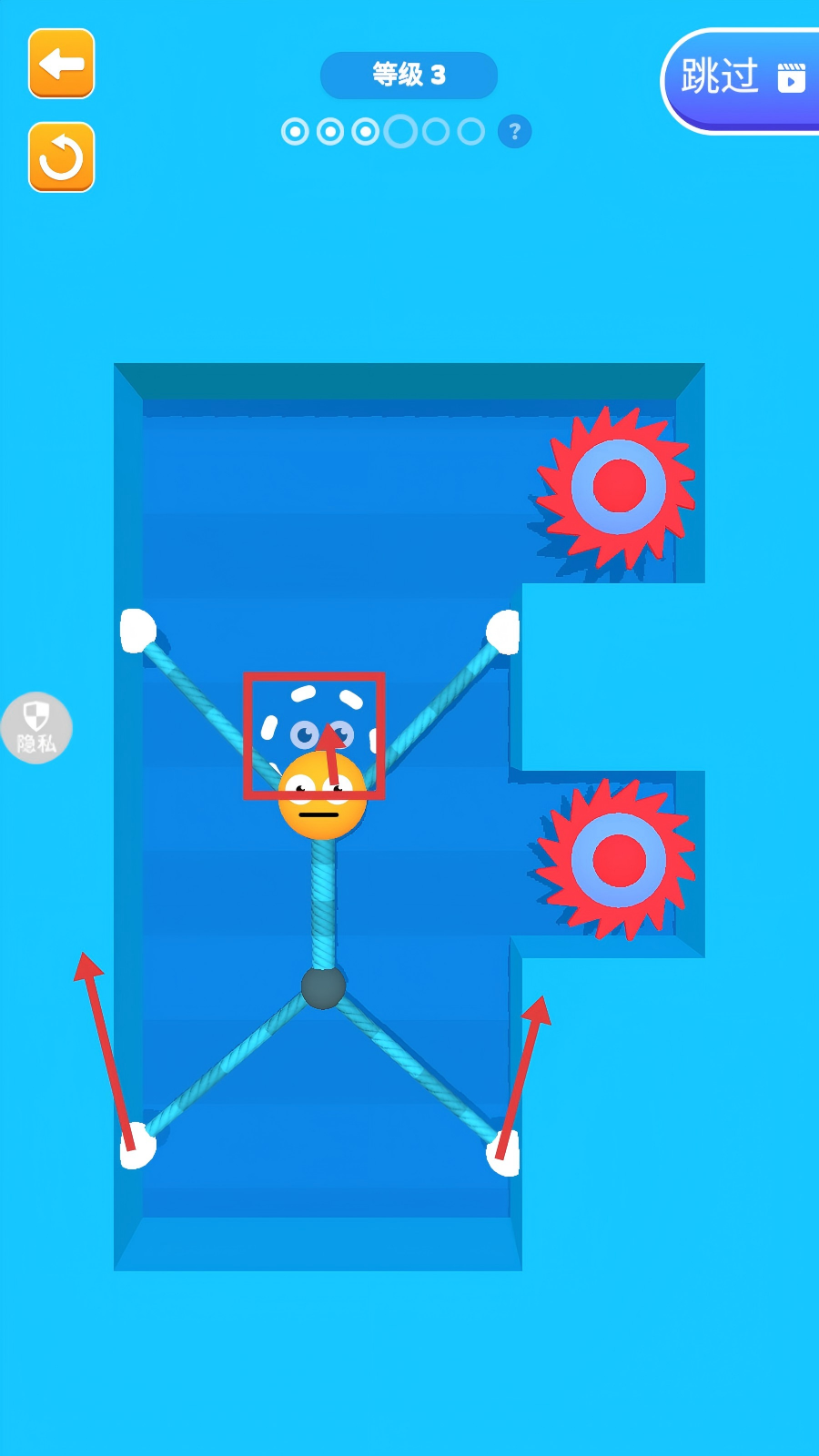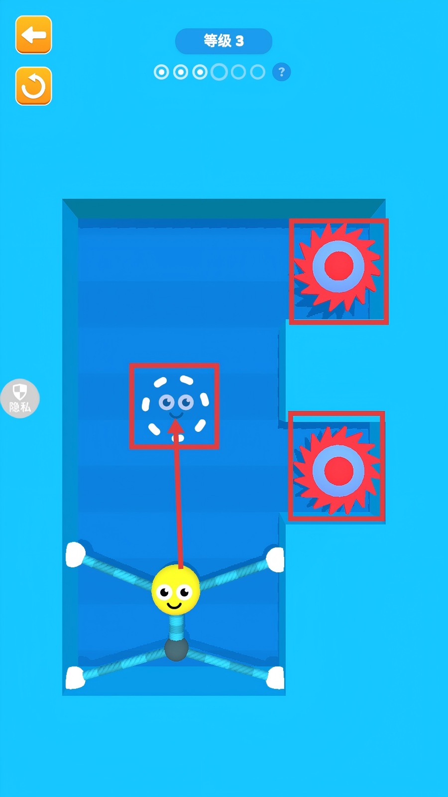 2、在【等级3】关卡,留意右侧的红色带刺齿轮,操控小球向带白点的目标区域移动。