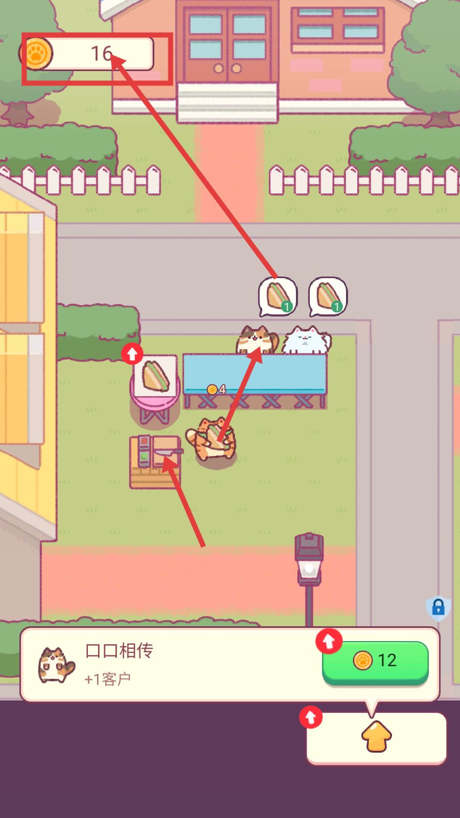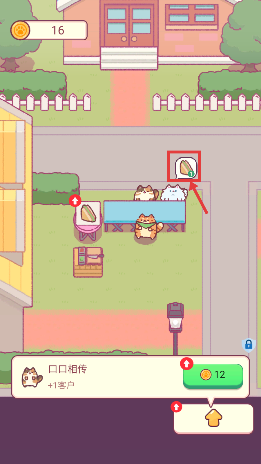 1、当猫咪顾客头顶出现【三明治】标识时,准备为其制作并提供对应的三明治,满足顾客需求。