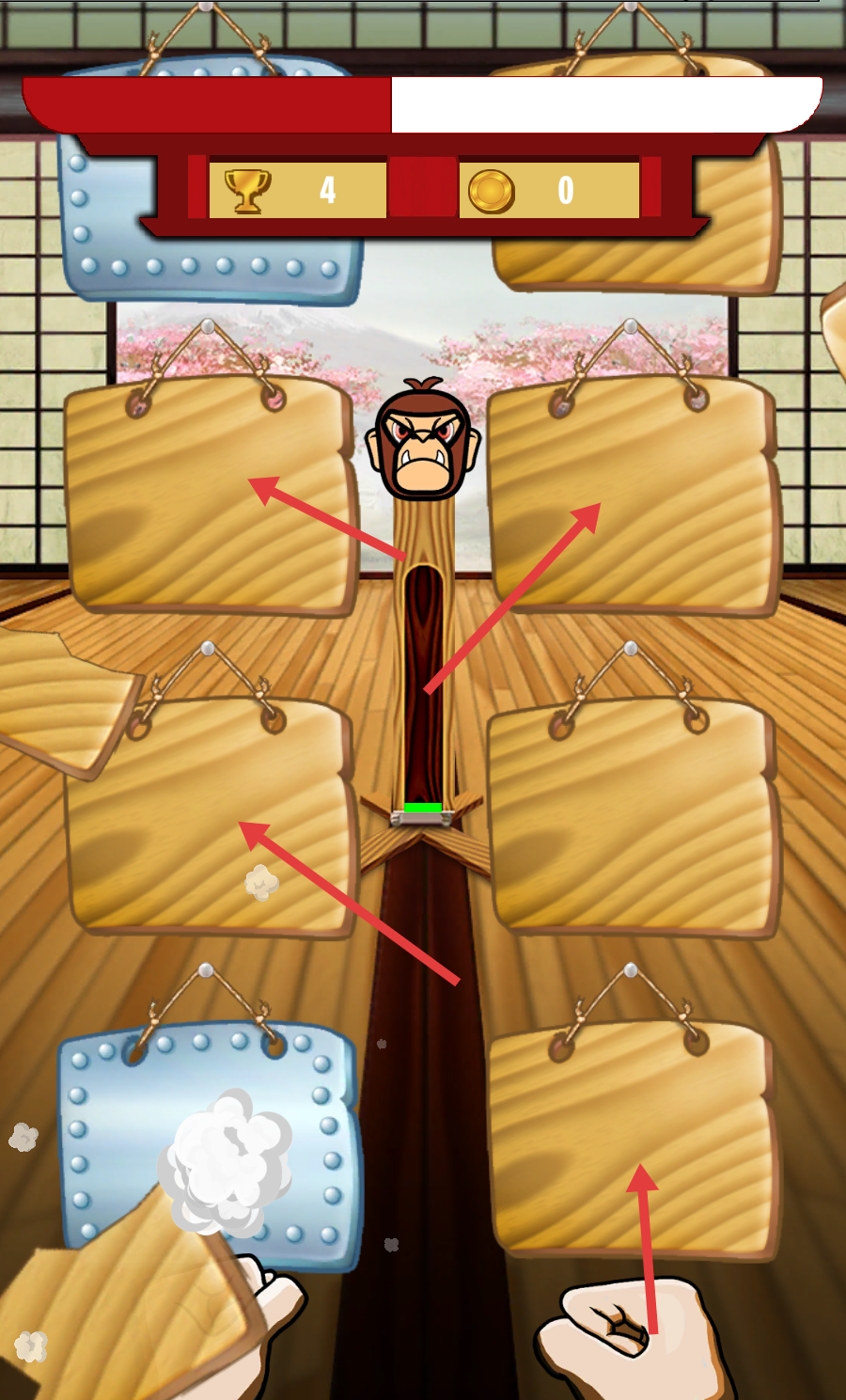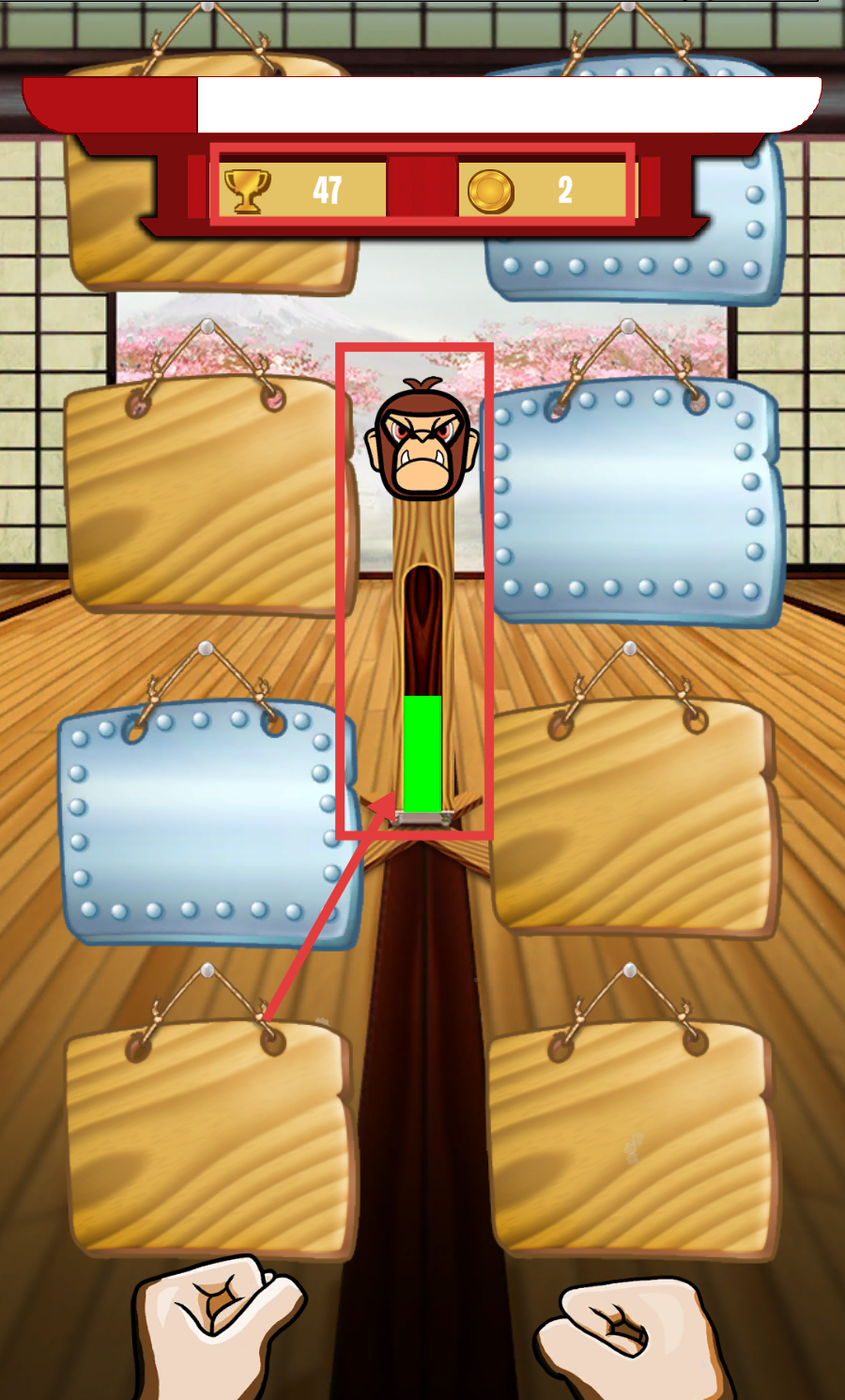 2、挑战中需快速击打出现的木板,击打成功可获得奖杯,此时能看到奖杯数-4,持续击打积累奖杯。