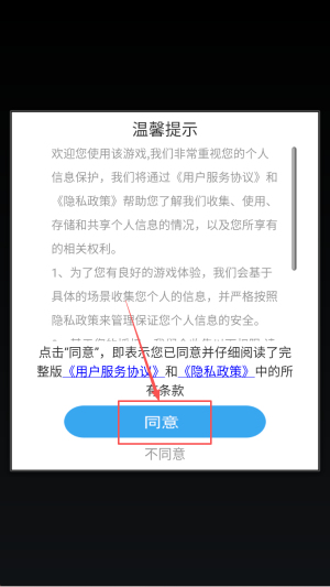 1、首先,阅读隐私政策并点击“同意”进入游戏。