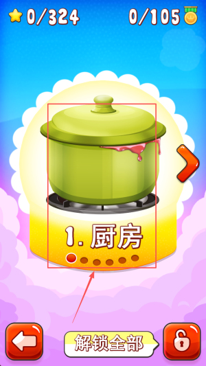 3、然后,点击“厨房”关卡开始收纳挑战。